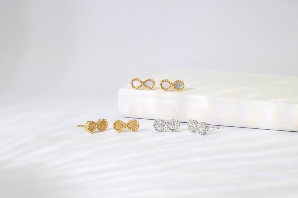 Refined and graceful, the Infinity Earrings capture the spirit of lasting connection. Subtle yet striking, they complement every expression of love — from quiet confidence to bold affection.