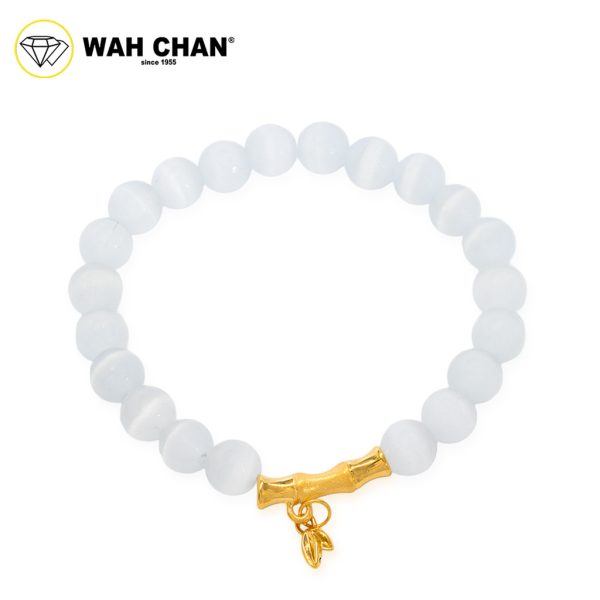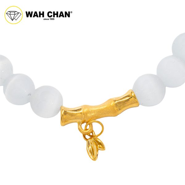 WAH CHAN 999 Gold Bamboo with White Cherry Crystal Bracelet J001-2