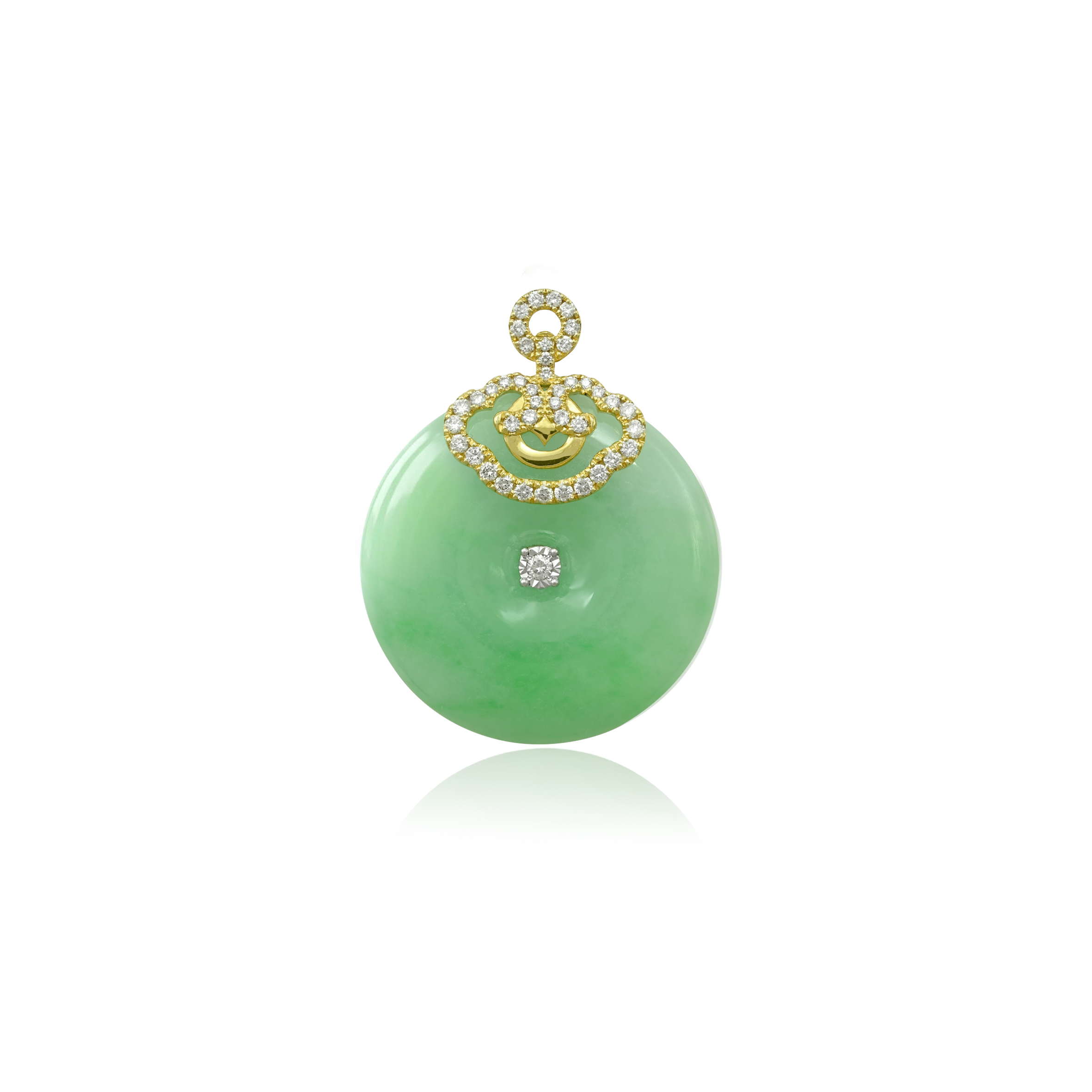 Home Gemstones Diamond 18K Yellow Gold Diamond Green Jade Pendant (PJ02875-B01)