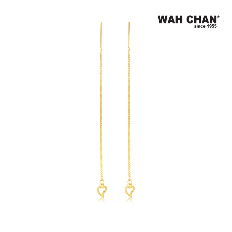 Delicate and meaningful, these 916 gold earline earrings feature a finely sculpted heart charm suspended from a graceful chain, capturing the quiet beauty of love and sentiment. The polished gold glows with a warm, understated elegance that moves with you, making every moment feel a little more special. Handcrafted with Wah Chan’s hallmark precision, this piece is perfect as a thoughtful gift or a personal token of affection. A timeless design to celebrate connection, joy, and treasured memories.