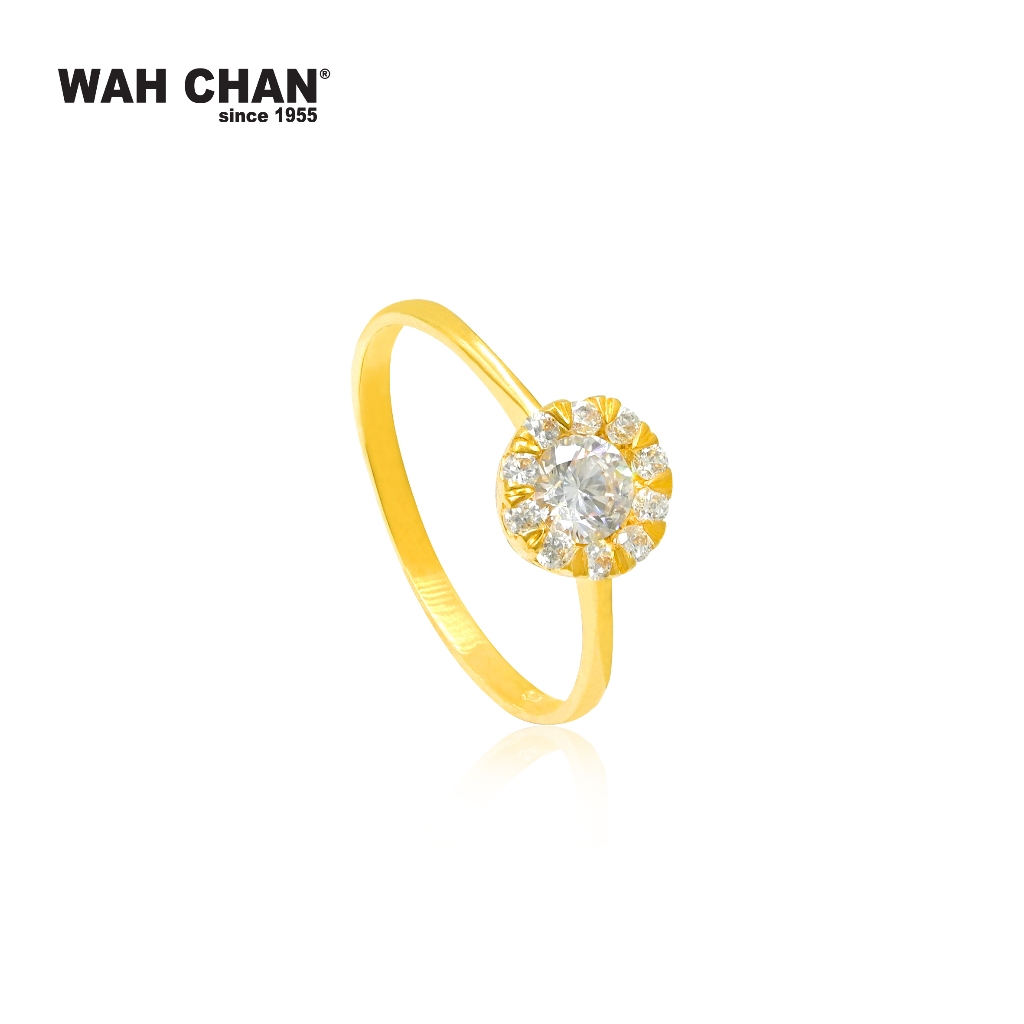 Gracefully crafted in 916 (22K) gold, this zirconia ring features a radiant round centre stone surrounded by a sparkling halo of smaller stones. The 5mm band enhances its brilliance while keeping the silhouette light and elegant. Available in a wide range of sizes, it makes a stunning choice for nikah ceremonies, engagements, or thoughtful gifting. Reflecting Wah Chan’s commitment to timeless beauty and meaningful design, this ring celebrates love with grace and shimmering charm.