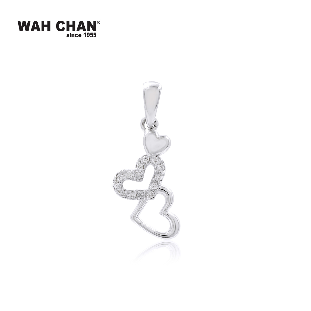 Delicate and full of meaning, this 9k white gold pendant from Wah Chan captures the poetry of love through two intertwined hearts. One heart shimmers with 14 brilliant diamonds, while the other offers a smooth, polished finish that reflects quiet grace. Designed with care and emotion, this piece speaks of connection, trust and shared journeys. Whether gifted as a symbol of enduring affection or worn as a personal keepsake, it is a timeless expression of the bonds that make life beautiful.