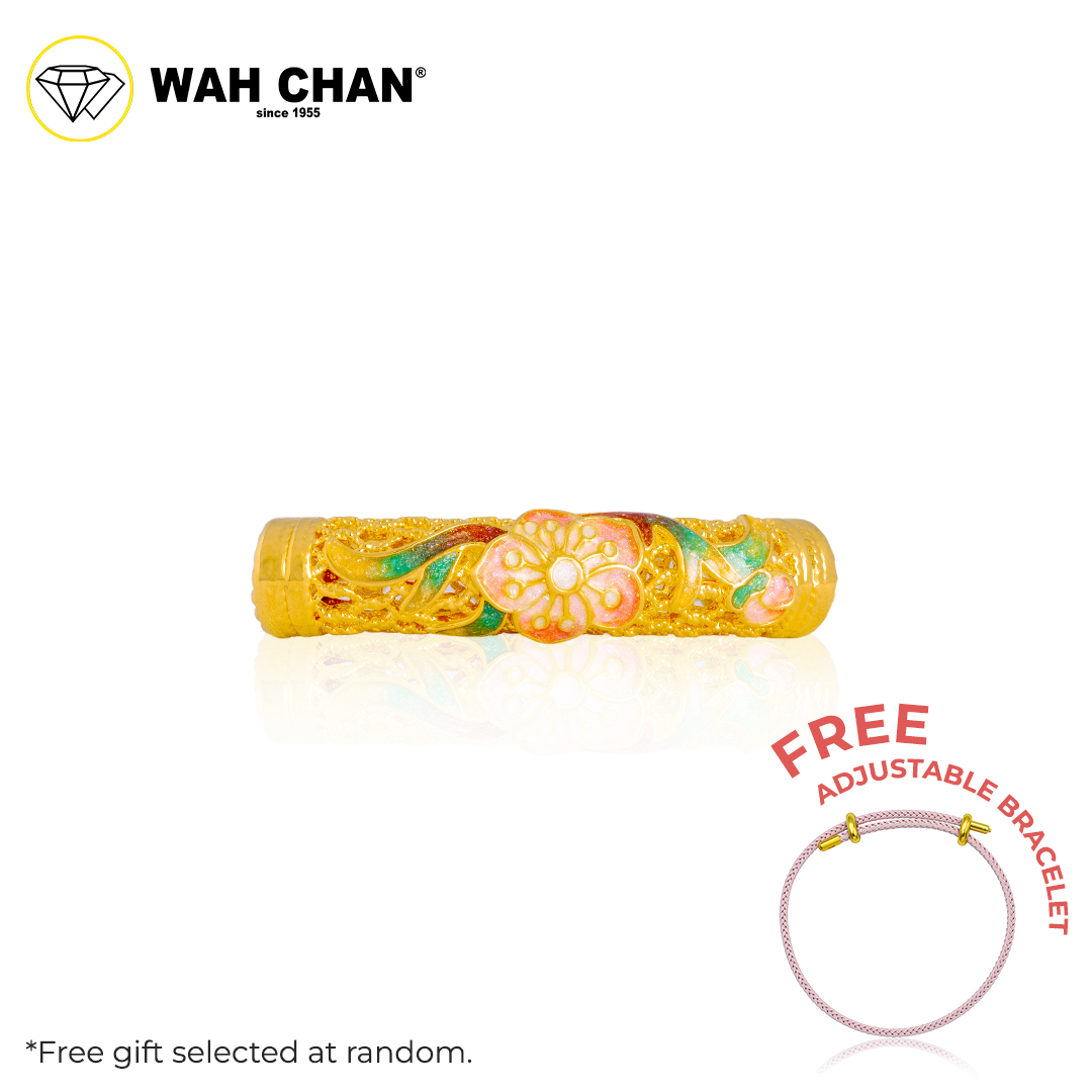 BUNDLE EXCLUSIVE – WAH CHAN 916 Gold Pendant – Pink Flower Bamboo Tube OSP1356