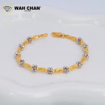 WAH CHAN 916 Gold Bangle with White Gold Plating CSH011 – Gelang Tangan Emas