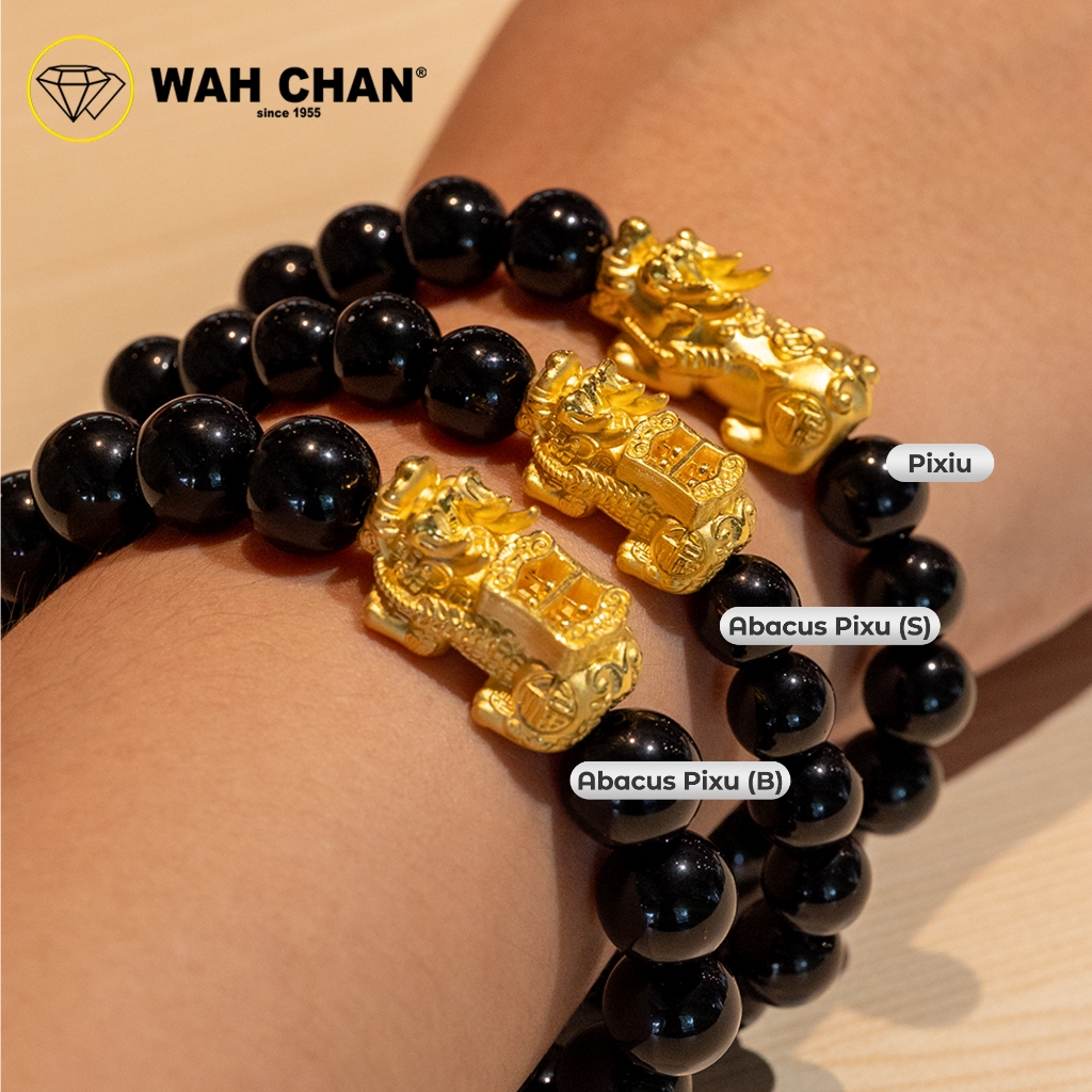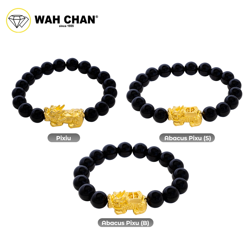 WAH CHAN 999 Gold Pendant – Dragon Pixiu Black Onyx Crystal Bracelet B35