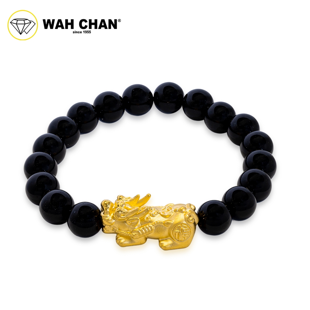 – WAH CHAN 999 Gold Pixiu Black Onyx Crystal Bracelet