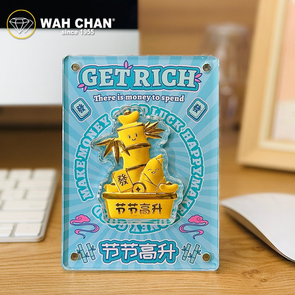 Unbox your luck with Wah Chan’s exclusive Blind Box collection! Each box holds a surprise 999 Gold charm, randomly selected from 5 prosperity-inspired designs;