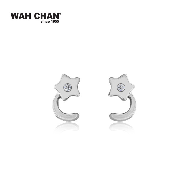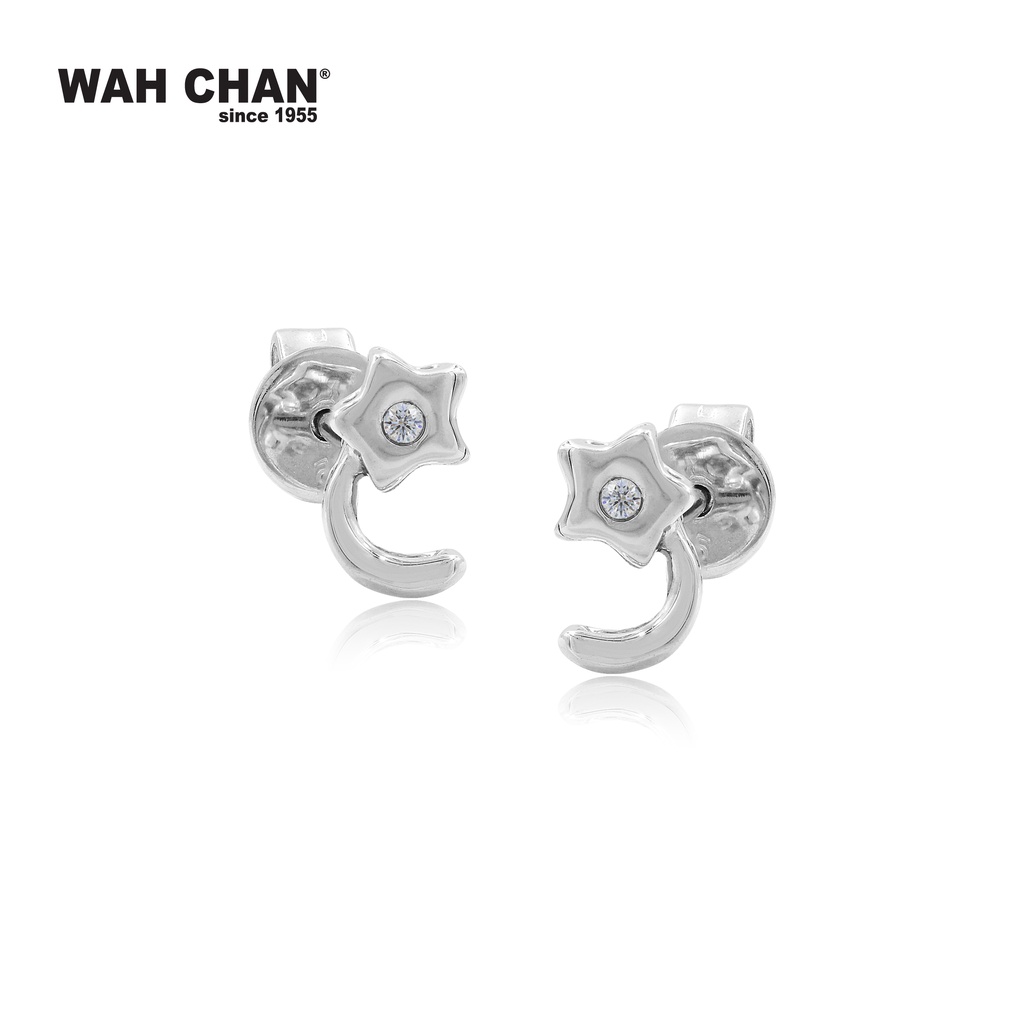 These charming earrings in 9k white gold feature a whimsical star paired with a delicate crescent, each adorned with a sparkling diamond at the centre. Light-hearted yet refined, the design captures the wonder of night skies and the sentiment behind thoughtful gifting. A gentle reminder of dreams, love, and cherished memories, this piece carries emotional depth in every detail. Rooted in Wah Chan’s tradition of timeless craftsmanship, it makes a meaningful keepsake for life’s treasured moments and heartfelt expressions.