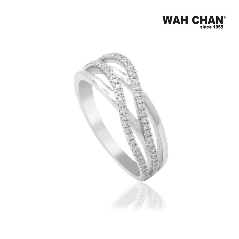 Elegantly sculpted in 9k white gold, this diamond ring features a flowing trio of polished and pavé-set bands that intertwine in graceful harmony. The shimmering curves reflect unity, balance, and the enduring strength of love, making it a meaningful choice for celebrating deep connections and lasting memories. Wah Chan’s signature craftsmanship brings every detail to life with care and precision, offering a timeless expression of sophistication and heartfelt sentiment that transcends occasion and speaks to a lifetime of treasured moments.