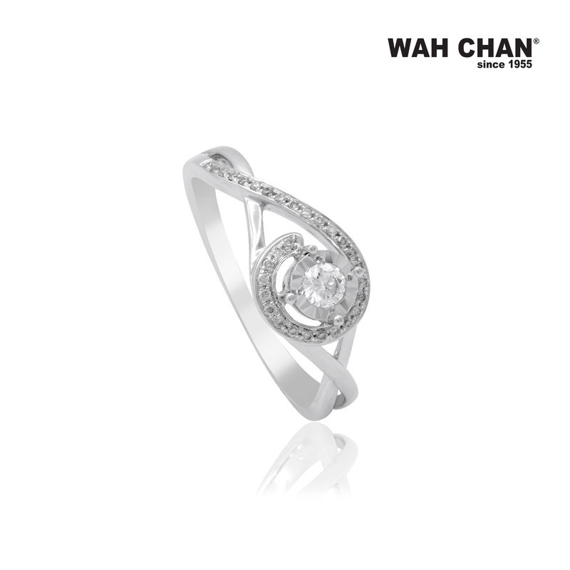 Delicate yet striking, the WAH CHAN White Gold Diamond Ring is a poetic celebration of grace and sentiment. Crafted in 9k white gold, its sweeping design encircles a radiant centre diamond with a ribbon of pavé-set brilliance, forming a silhouette that suggests movement and connection. This elegant piece evokes memories, milestones and the enduring beauty of love. Perfect for heartfelt gifting or as a personal emblem of meaning, it embodies the craftsmanship and emotional depth that define Wah Chan.