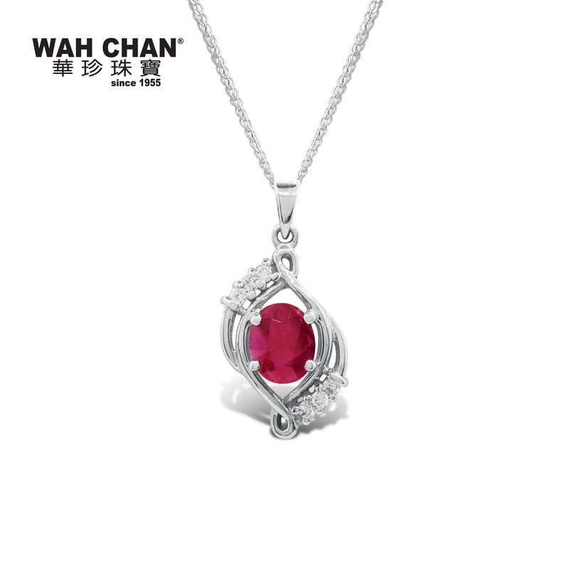 Set in luminous 9k white gold, this ruby and diamond pendant from Wah Chan is a striking symbol of passion and grace. A vivid ruby takes centre stage, cradled within an elegant frame of gently curving lines and accented by shimmering diamonds. The fluid silhouette and rich colour palette evoke heartfelt emotion and timeless beauty. Crafted with care and tradition, this pendant is a meaningful gift for life’s most treasured milestones, from romantic anniversaries to personal celebrations of love and strength.